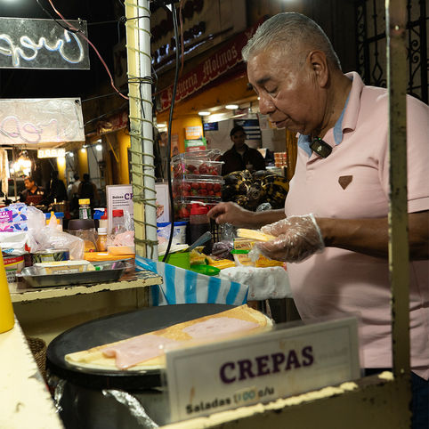 Si caminas por la calle Aguayo en Coyoacán, seguro el aroma de Crepas Don José te atrapa. Sus riquísimas crepas y hot cakes, preparados al momento, son la opción perfecta para endulzar el día sin gastar mucho. Lo mejor es que utilizan productos Del Rancho, lo que les da ese toque casero, rendidor y con el sabor de barrio que tanto gusta a quienes pasan por el centro de Coyoacán en busca de algo rico y accesible.